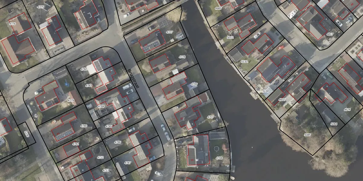 Het perceel waarop Brugstraat 19 staat heeft een oppervlakte van 464 m². Dit is een groot perceel. De perceeloppervlakte wordt geregistreerd door het Kadaster. Gedetailleerde informatie over de maten van dit perceel kunt u vinden in het rapport Kadastrale kaart met maatvoering van Brugstraat 19.