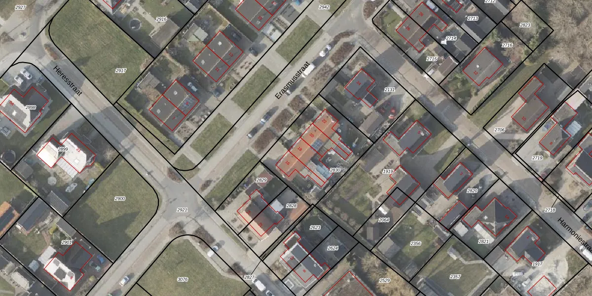 Erasmusstraat 18 is gelegen op kadastraal perceel PKL02D2830. Deze kadastrale aanduiding is uniek en wordt gebruikt door het Kadaster om eigendomsrechten en andere zakelijke rechten vast te leggen. Het perceel maakt onderdeel uit van de kadastrale gemeente Oude Pekela.