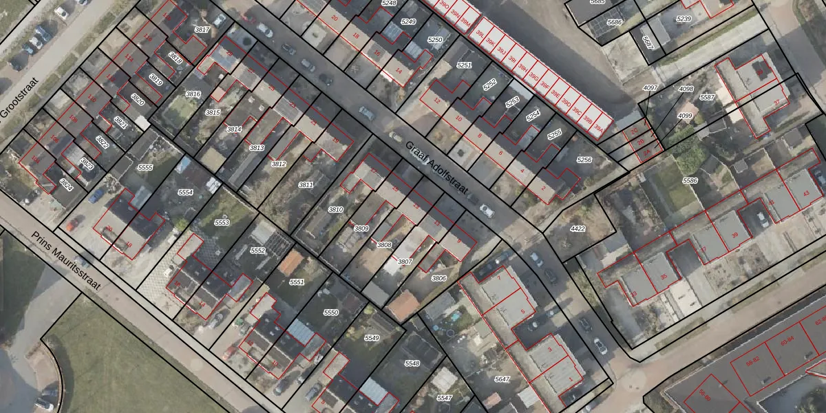 Graaf Adolfstraat 13 is gelegen op kadastraal perceel PKL02A3808. Deze kadastrale aanduiding is uniek en wordt gebruikt door het Kadaster om eigendomsrechten en andere zakelijke rechten vast te leggen. Het perceel maakt onderdeel uit van de kadastrale gemeente Oude Pekela.