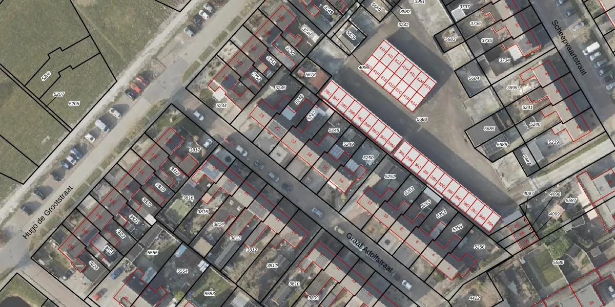 Het perceel waarop Graaf Adolfstraat 18 staat heeft een oppervlakte van 165 m². Dit is een middelgroot perceel. De perceeloppervlakte wordt geregistreerd door het Kadaster. Gedetailleerde informatie over de maten van dit perceel kunt u vinden in het rapport Kadastrale kaart met maatvoering van Graaf Adolfstraat 18.