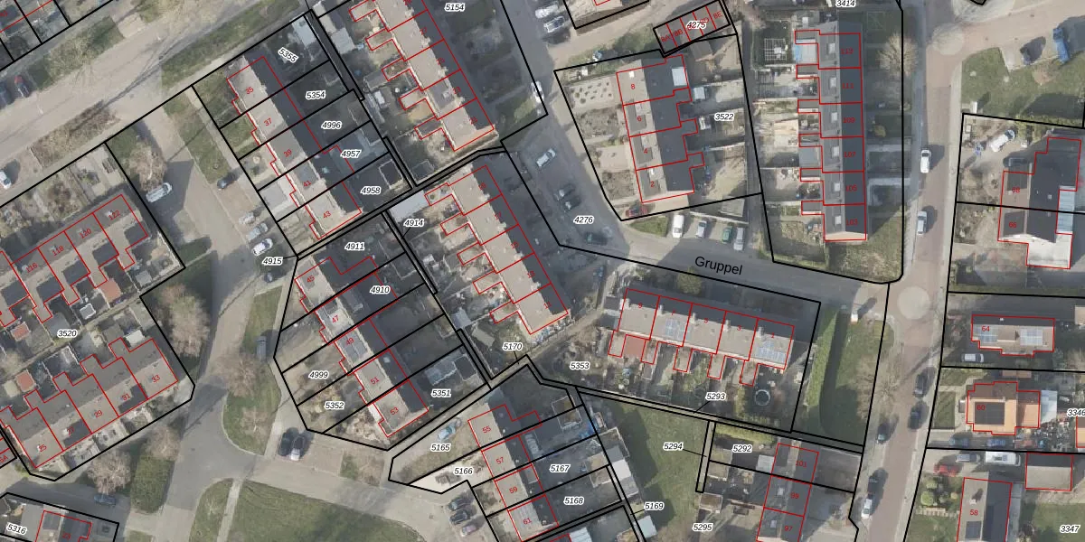 Gruppel 13 is gelegen op kadastraal perceel PKL02A5353. Deze kadastrale aanduiding is uniek en wordt gebruikt door het Kadaster om eigendomsrechten en andere zakelijke rechten vast te leggen. Het perceel maakt onderdeel uit van de kadastrale gemeente Oude Pekela.