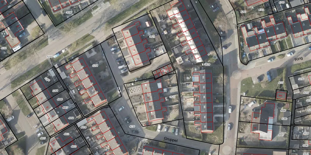 Het perceel waarop Gruppel 8-A staat heeft een oppervlakte van 67 m². Dit is een klein perceel. De perceeloppervlakte wordt geregistreerd door het Kadaster. Gedetailleerde informatie over de maten van dit perceel kunt u vinden in het rapport Kadastrale kaart met maatvoering van Gruppel 8-A.