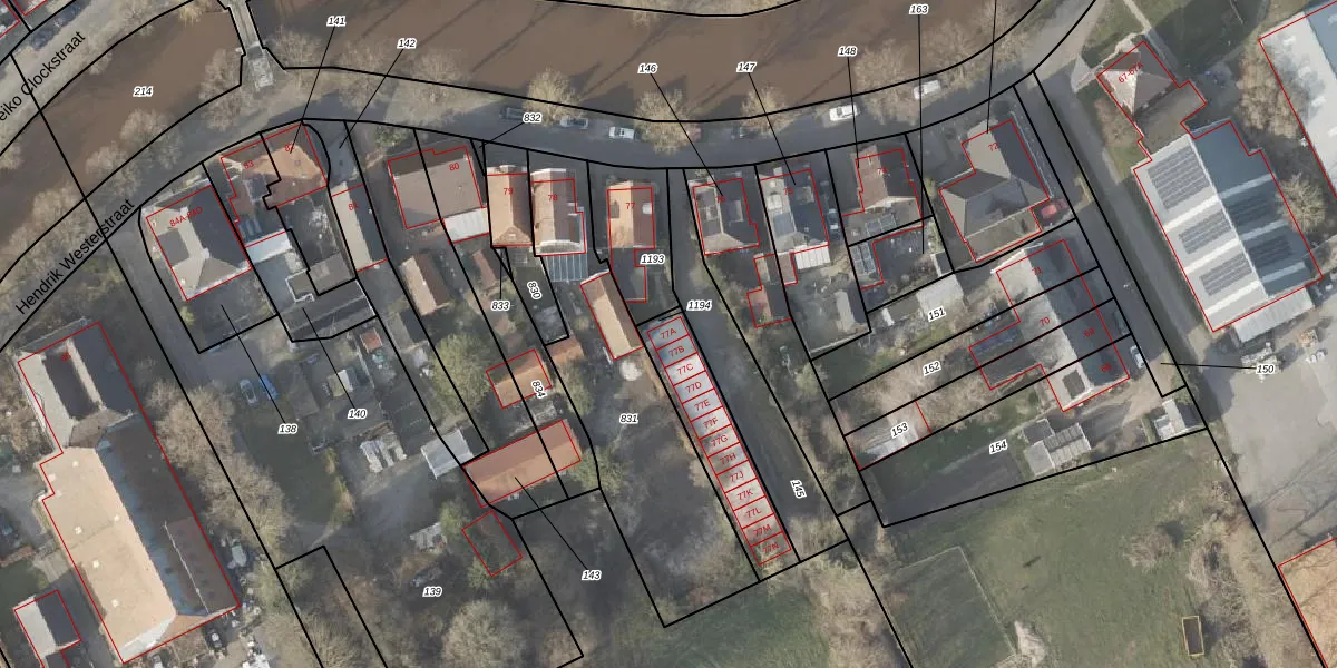 Hendrik Westerstraat 77-A is gelegen op kadastraal perceel PKL02E1194. Deze kadastrale aanduiding is uniek en wordt gebruikt door het Kadaster om eigendomsrechten en andere zakelijke rechten vast te leggen. Het perceel maakt onderdeel uit van de kadastrale gemeente Oude Pekela.