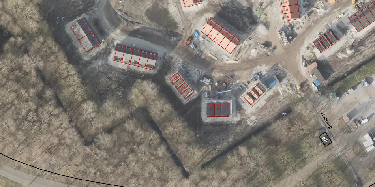 Het perceel waarop Hooiweg 13 staat heeft een oppervlakte van 8,7 ha. Dit is een zeer groot perceel. De perceeloppervlakte wordt geregistreerd door het Kadaster. Gedetailleerde informatie over de maten van dit perceel kunt u vinden in het rapport Kadastrale kaart met maatvoering van Hooiweg 13.