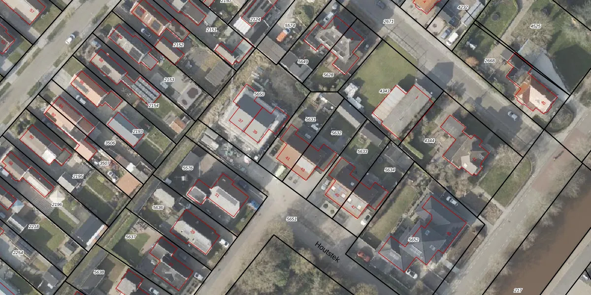 Houtstek 41 is gelegen op kadastraal perceel PKL02A5631. Deze kadastrale aanduiding is uniek en wordt gebruikt door het Kadaster om eigendomsrechten en andere zakelijke rechten vast te leggen. Het perceel maakt onderdeel uit van de kadastrale gemeente Oude Pekela.