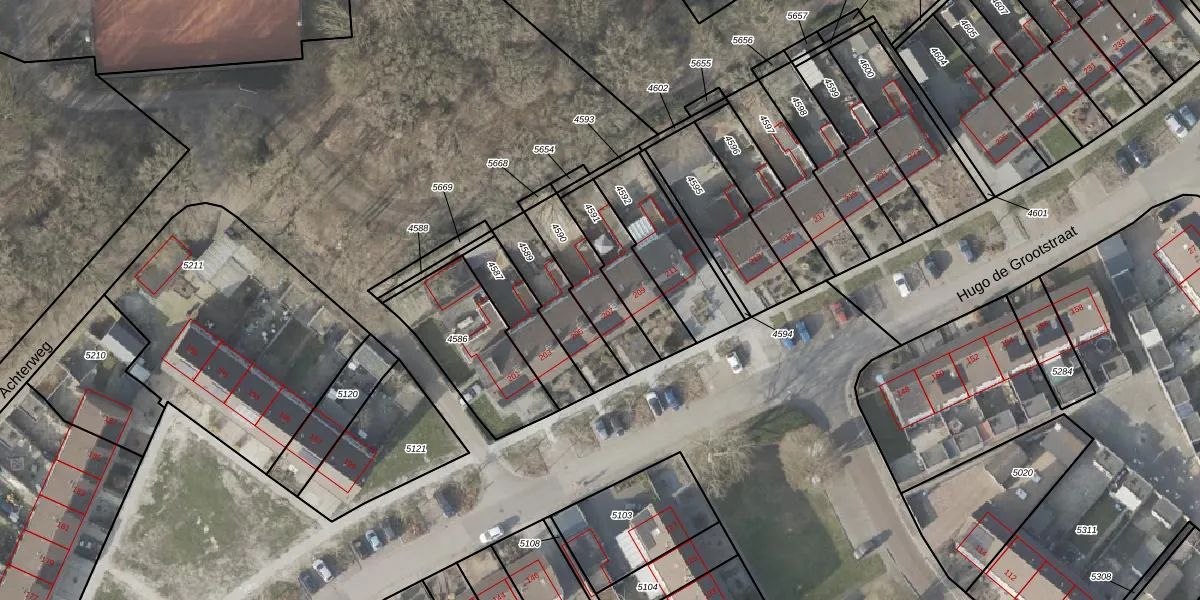 Hugo de Grootstraat 207 is gelegen op kadastraal perceel PKL02A4590. Deze kadastrale aanduiding is uniek en wordt gebruikt door het Kadaster om eigendomsrechten en andere zakelijke rechten vast te leggen. Het perceel maakt onderdeel uit van de kadastrale gemeente Oude Pekela.