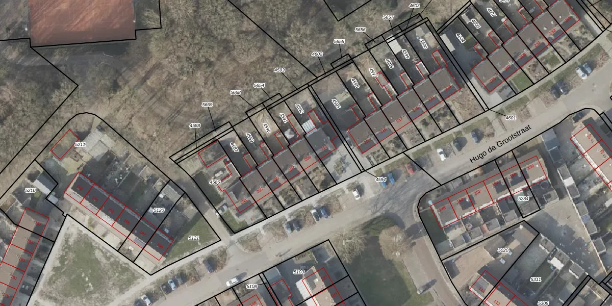 Het perceel waarop Hugo de Grootstraat 209 staat heeft een oppervlakte van 202 m². Dit is een middelgroot perceel. De perceeloppervlakte wordt geregistreerd door het Kadaster. Gedetailleerde informatie over de maten van dit perceel kunt u vinden in het rapport Kadastrale kaart met maatvoering van Hugo de Grootstraat 209.