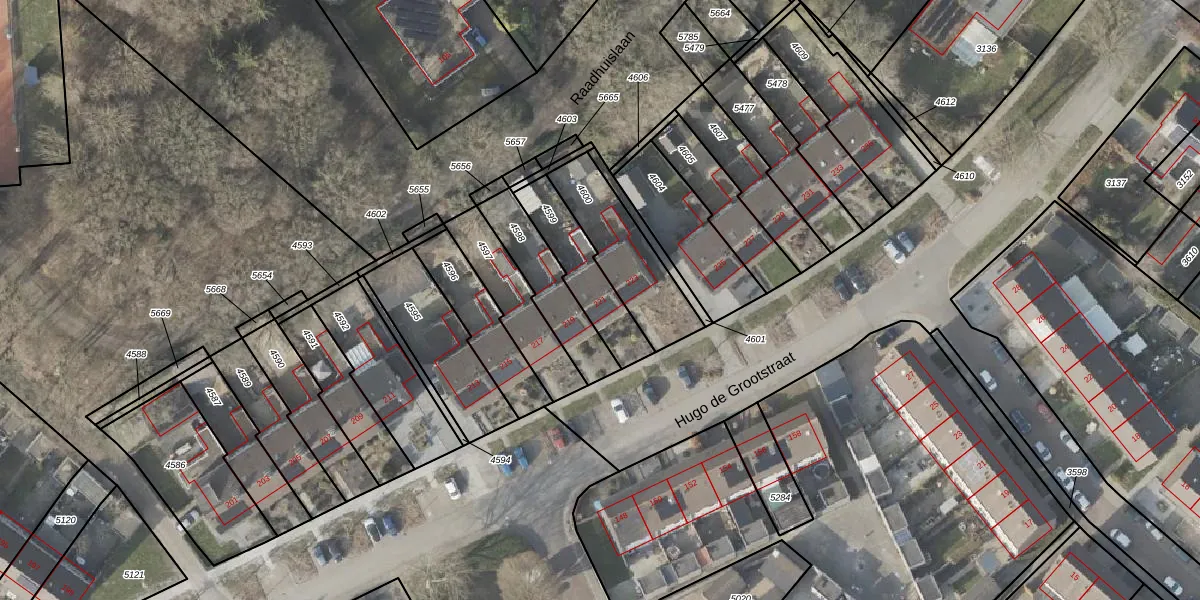 Hugo de Grootstraat 221 is gelegen op kadastraal perceel PKL02A4599. Deze kadastrale aanduiding is uniek en wordt gebruikt door het Kadaster om eigendomsrechten en andere zakelijke rechten vast te leggen. Het perceel maakt onderdeel uit van de kadastrale gemeente Oude Pekela.