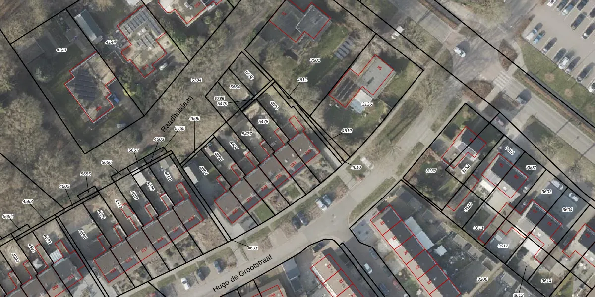 Het perceel waarop Hugo de Grootstraat 235 staat heeft een oppervlakte van 305 m². Dit is een groot perceel. De perceeloppervlakte wordt geregistreerd door het Kadaster. Gedetailleerde informatie over de maten van dit perceel kunt u vinden in het rapport Kadastrale kaart met maatvoering van Hugo de Grootstraat 235.
