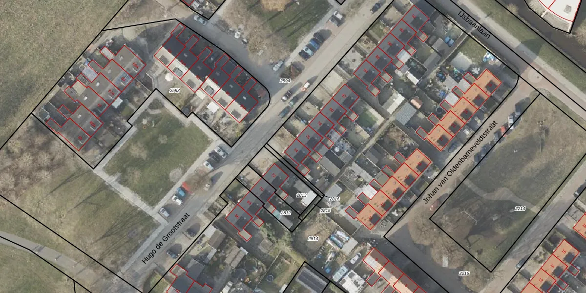 Het perceel waarop Hugo de Grootstraat 74 staat heeft een oppervlakte van 6721 m². Dit is een zeer groot perceel. De perceeloppervlakte wordt geregistreerd door het Kadaster. Gedetailleerde informatie over de maten van dit perceel kunt u vinden in het rapport Kadastrale kaart met maatvoering van Hugo de Grootstraat 74.