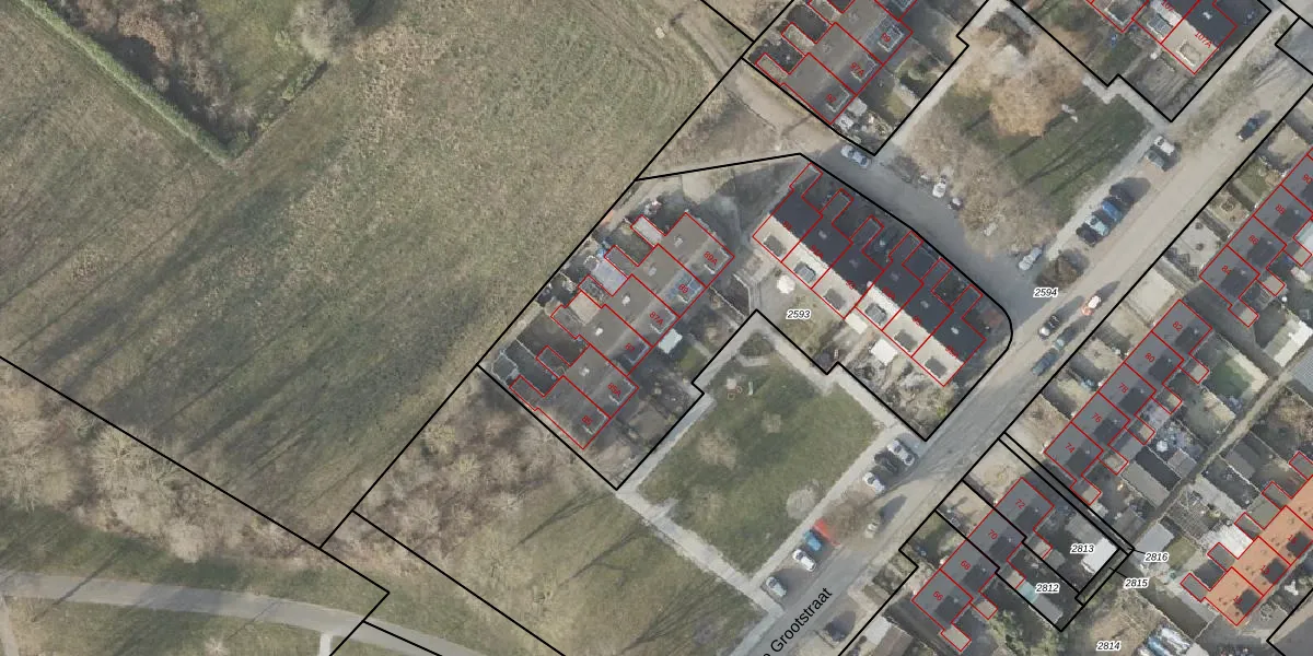 Hugo de Grootstraat 87-A is gelegen op kadastraal perceel PKL02D2593. Deze kadastrale aanduiding is uniek en wordt gebruikt door het Kadaster om eigendomsrechten en andere zakelijke rechten vast te leggen. Het perceel maakt onderdeel uit van de kadastrale gemeente Oude Pekela.