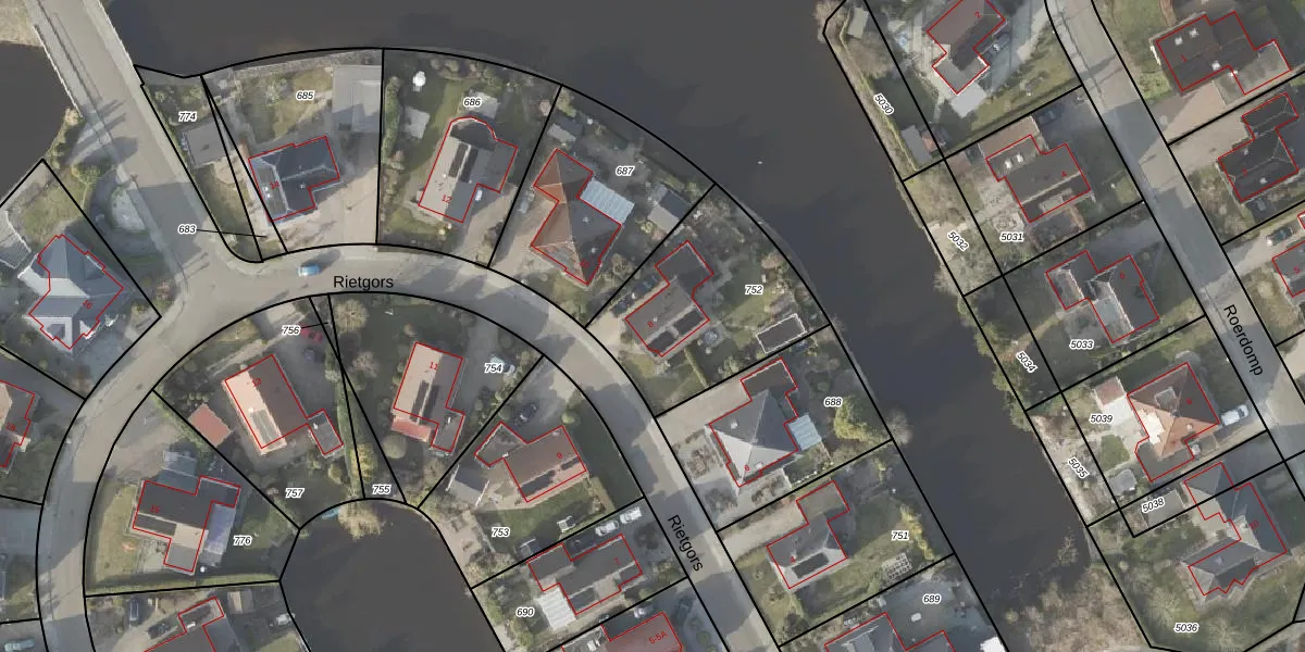 Het perceel waarop Rietgors 8 staat heeft een oppervlakte van 687 m². Dit is een groot perceel. De perceeloppervlakte wordt geregistreerd door het Kadaster. Gedetailleerde informatie over de maten van dit perceel kunt u vinden in het rapport Kadastrale kaart met maatvoering van Rietgors 8.