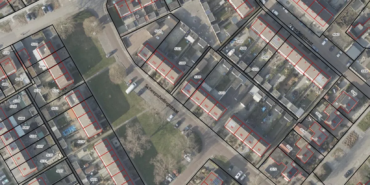 Het perceel waarop Scheepshellingstraat 106 staat heeft een oppervlakte van 283 m². Dit is een middelgroot perceel. De perceeloppervlakte wordt geregistreerd door het Kadaster. Gedetailleerde informatie over de maten van dit perceel kunt u vinden in het rapport Kadastrale kaart met maatvoering van Scheepshellingstraat 106.