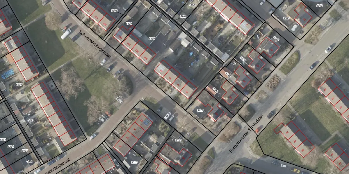Het perceel waarop Scheepshellingstraat 94 staat heeft een oppervlakte van 2882 m². Dit is een zeer groot perceel. De perceeloppervlakte wordt geregistreerd door het Kadaster. Gedetailleerde informatie over de maten van dit perceel kunt u vinden in het rapport Kadastrale kaart met maatvoering van Scheepshellingstraat 94.