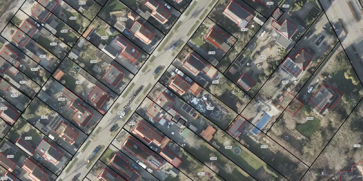 Gebruik de zoekbalk of klik op een perceel voor informatie over de adressen binnen dit perceel.