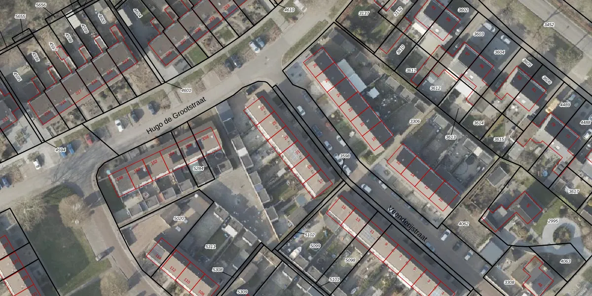 Het perceel waarop Veenderijstraat 21 staat heeft een oppervlakte van 3001 m². Dit is een zeer groot perceel. De perceeloppervlakte wordt geregistreerd door het Kadaster. Gedetailleerde informatie over de maten van dit perceel kunt u vinden in het rapport Kadastrale kaart met maatvoering van Veenderijstraat 21.