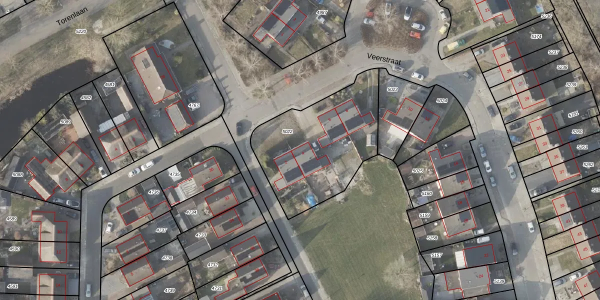 Veerstraat 4 is gelegen op kadastraal perceel PKL02C5022. Deze kadastrale aanduiding is uniek en wordt gebruikt door het Kadaster om eigendomsrechten en andere zakelijke rechten vast te leggen. Het perceel maakt onderdeel uit van de kadastrale gemeente Oude Pekela.