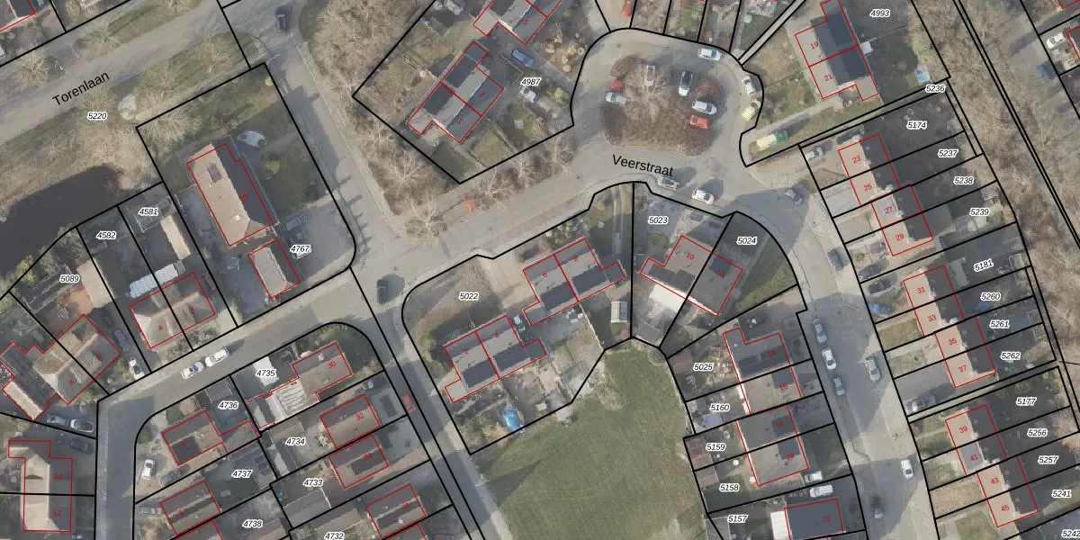 Veerstraat 6 is gelegen op kadastraal perceel PKL02C5022. Deze kadastrale aanduiding is uniek en wordt gebruikt door het Kadaster om eigendomsrechten en andere zakelijke rechten vast te leggen. Het perceel maakt onderdeel uit van de kadastrale gemeente Oude Pekela.