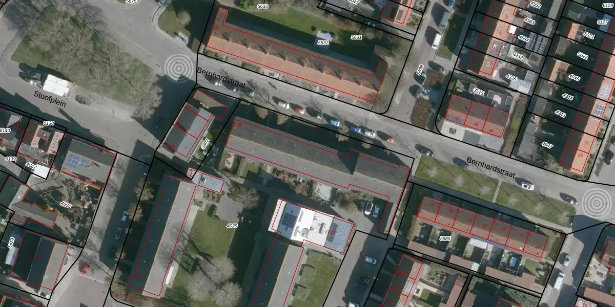 Het perceel waarop Bernhardstraat 27-a staat heeft een oppervlakte van 4915 m². Dit is een zeer groot perceel. De perceeloppervlakte wordt geregistreerd door het Kadaster. Gedetailleerde informatie over de maten van dit perceel kunt u vinden in het rapport Kadastrale kaart met maatvoering van Bernhardstraat 27-a.