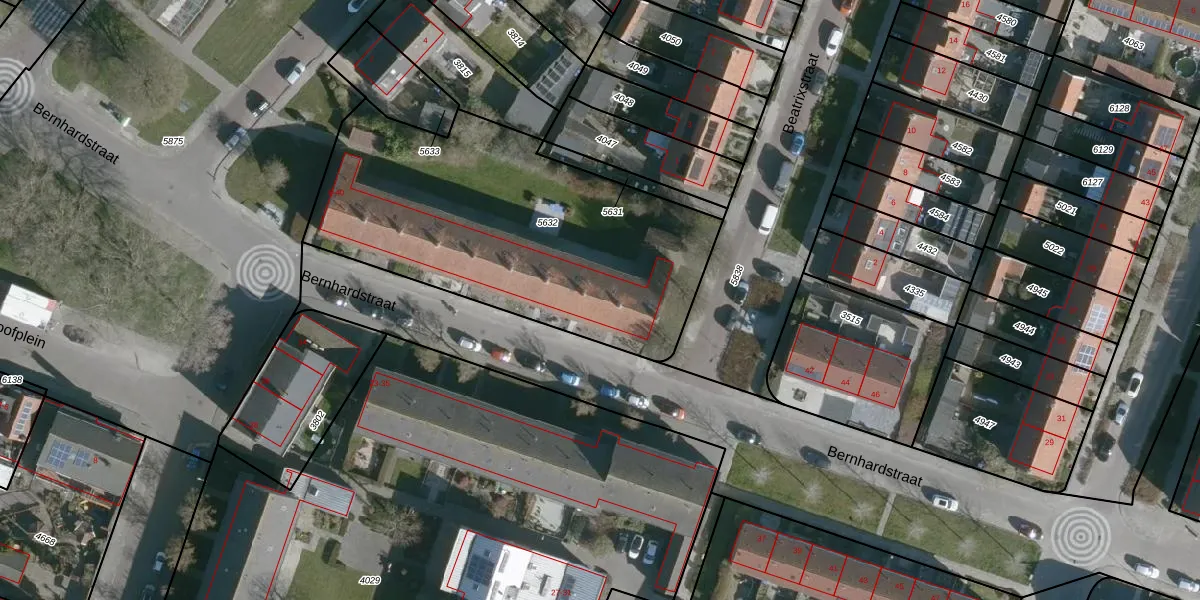 Bernhardstraat 30 is gelegen op kadastraal perceel OFK00C5632. Deze kadastrale aanduiding is uniek en wordt gebruikt door het Kadaster om eigendomsrechten en andere zakelijke rechten vast te leggen. Het perceel maakt onderdeel uit van de kadastrale gemeente Oostflakkee.