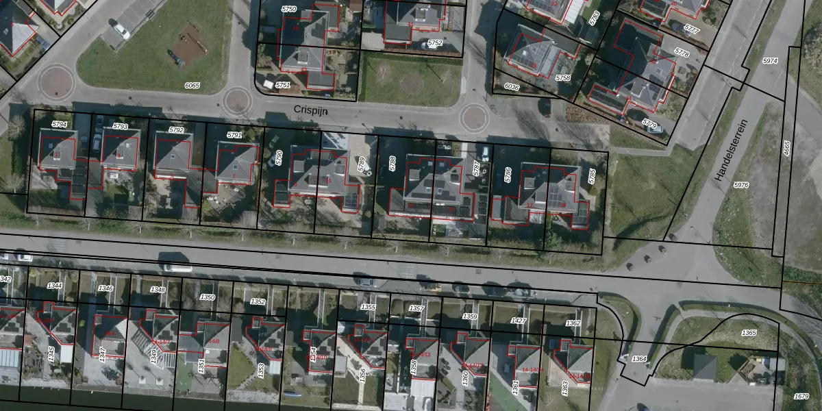 Het perceel waarop Crispijn 13 staat heeft een oppervlakte van 353 m². Dit is een groot perceel. De perceeloppervlakte wordt geregistreerd door het Kadaster. Gedetailleerde informatie over de maten van dit perceel kunt u vinden in het rapport Kadastrale kaart met maatvoering van Crispijn 13.