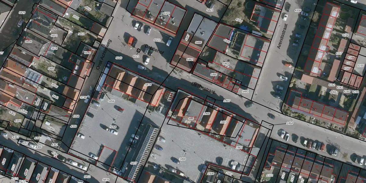 Het perceel waarop Dabbehof 36 staat heeft een oppervlakte van 1844 m². Dit is een zeer groot perceel. De perceeloppervlakte wordt geregistreerd door het Kadaster. Gedetailleerde informatie over de maten van dit perceel kunt u vinden in het rapport Kadastrale kaart met maatvoering van Dabbehof 36.