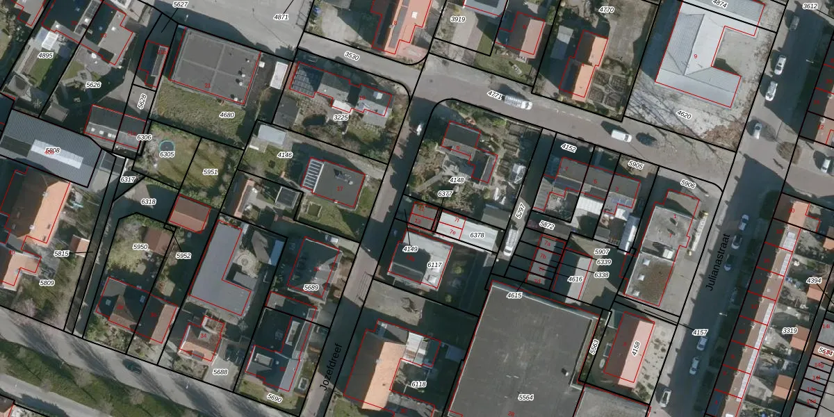 Het perceel waarop Jozefdreef 11 staat heeft een oppervlakte van 49 m². Dit is een klein perceel. De perceeloppervlakte wordt geregistreerd door het Kadaster. Gedetailleerde informatie over de maten van dit perceel kunt u vinden in het rapport Kadastrale kaart met maatvoering van Jozefdreef 11.