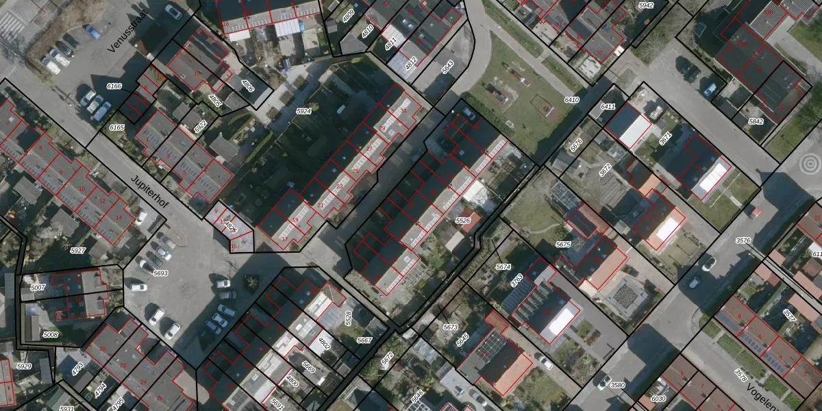 Het perceel waarop Jupiterhof 46 staat heeft een oppervlakte van 1188 m². Dit is een zeer groot perceel. De perceeloppervlakte wordt geregistreerd door het Kadaster. Gedetailleerde informatie over de maten van dit perceel kunt u vinden in het rapport Kadastrale kaart met maatvoering van Jupiterhof 46.