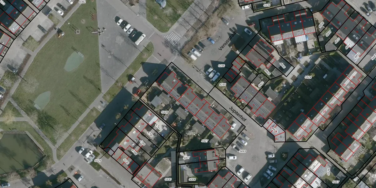 Jupiterhof 6 is gelegen op kadastraal perceel OFK00C5927. Deze kadastrale aanduiding is uniek en wordt gebruikt door het Kadaster om eigendomsrechten en andere zakelijke rechten vast te leggen. Het perceel maakt onderdeel uit van de kadastrale gemeente Oostflakkee.