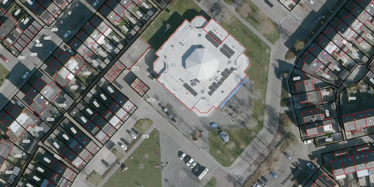 Het perceel waarop Melkweg 75 staat heeft een oppervlakte van 5,8 ha. Dit is een zeer groot perceel. De perceeloppervlakte wordt geregistreerd door het Kadaster. Gedetailleerde informatie over de maten van dit perceel kunt u vinden in het rapport Kadastrale kaart met maatvoering van Melkweg 75.