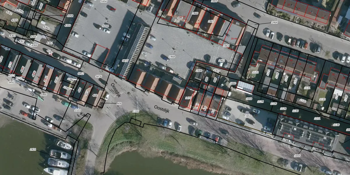 Het perceel waarop Oostdijk 9 staat heeft een oppervlakte van 1844 m². Dit is een zeer groot perceel. De perceeloppervlakte wordt geregistreerd door het Kadaster. Gedetailleerde informatie over de maten van dit perceel kunt u vinden in het rapport Kadastrale kaart met maatvoering van Oostdijk 9.