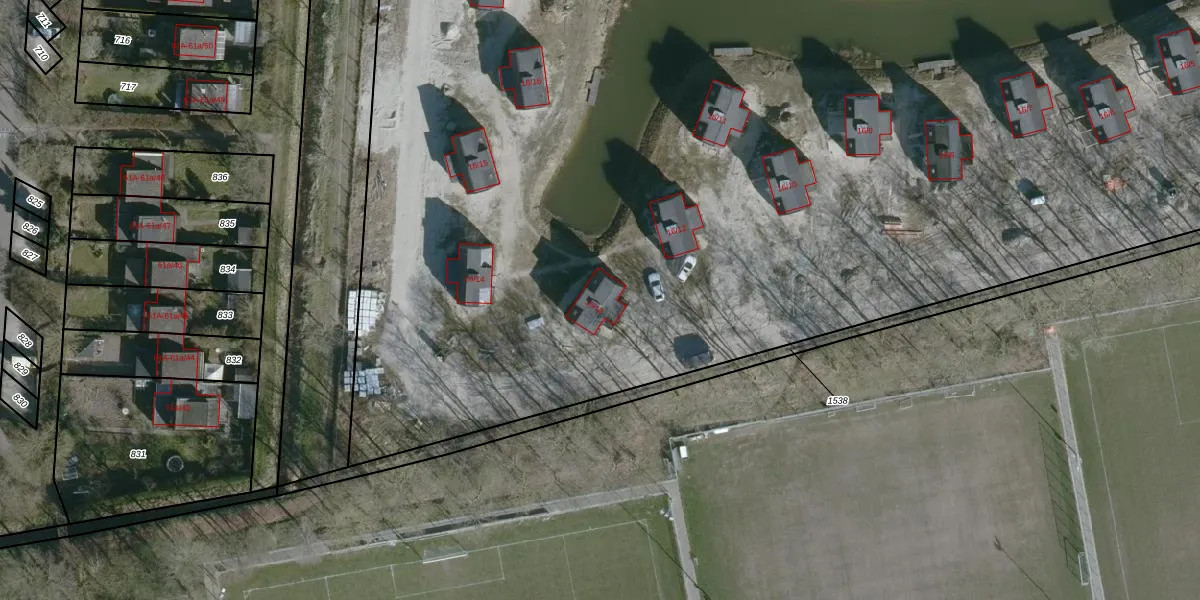Het adres ligt op het perceel OFK00-E-1634, dat zich in de kadastrale gemeente Oostflakkee bevindt. Het perceel is met 7,8 ha relatief groot. Het gemiddelde ligt in de kadastrale gemeente Oostflakkee op 1,6 ha. De grootste perceeloppervlakte in de kadastrale gemeente is 7,27 km². De kleinste oppervlakte bedraagt 0 m². Op het perceel liggen in totaal 122 adressen. In de Basisregistratie Kadaster (BRK) werden de grenzen van het perceel geregistreerd op 10-03-2023.