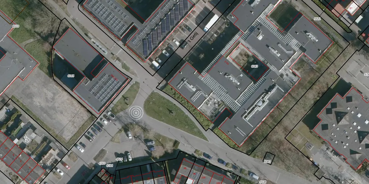 Het adres is gelegen op perceel 6043 in de sectie C en de kadastrale gemeente Oostflakkee. De kadastrale aanduiding is aldus OFK00-C-6043. Het perceel is kleiner dan gemiddeld in Oostflakkee. Het perceel is 5255 m² groot, terwijl het gemiddelde ligt op 1,6 ha. Het kleinste perceel in de kadastrale gemeente is 0 m² groot. De grootste perceeloppervlakte is 7,27 km². Op het perceel zijn 34 adressen aanwezig. De huidige grenzen van het perceel zijn digitaal in de Basisregistratie Kadaster (BRK) geregistreerd op 21-07-2014.