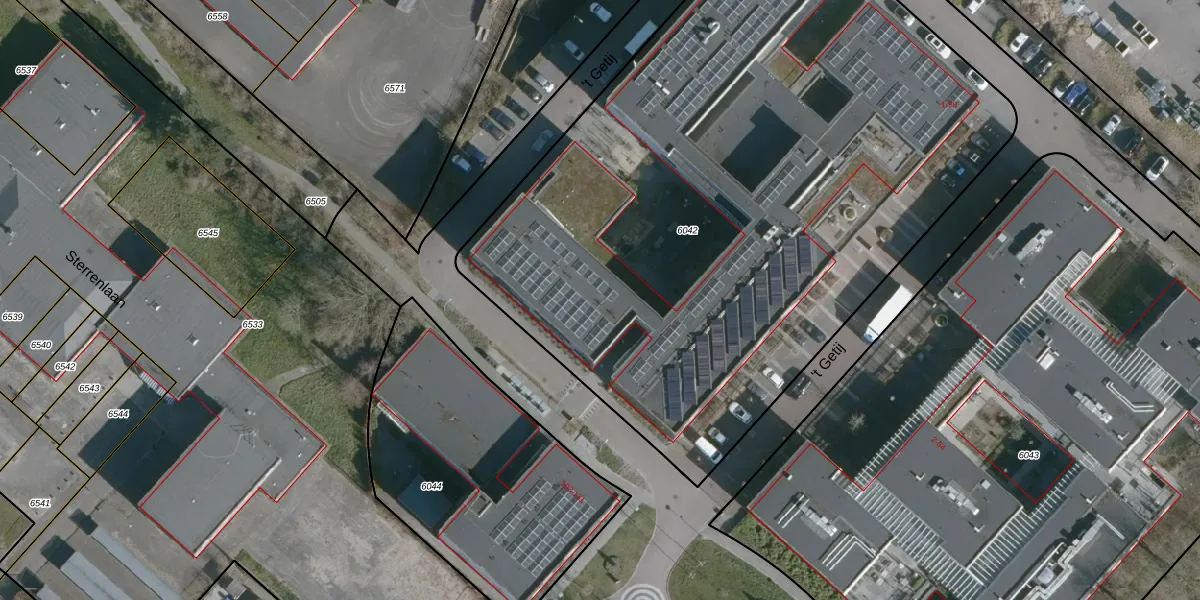Het adres is gelegen op perceel 6042 in de sectie C en de kadastrale gemeente Oostflakkee. De kadastrale aanduiding is aldus OFK00-C-6042. Het perceel is kleiner dan gemiddeld in Oostflakkee. Het perceel is 4595 m² groot, terwijl het gemiddelde ligt op 1,6 ha. De grootste perceeloppervlakte in de kadastrale gemeente is 7,27 km². De kleinste oppervlakte bedraagt 0 m². Op het perceel liggen in totaal 50 adressen. In de Basisregistratie Kadaster (BRK) werden de grenzen van het perceel geregistreerd op 21-07-2014.