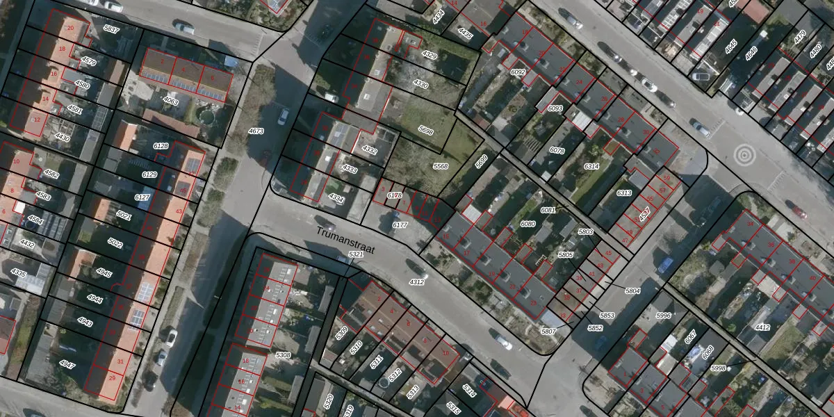 Trumanstraat 9 is gelegen op kadastraal perceel OFK00C6177. Deze kadastrale aanduiding is uniek en wordt gebruikt door het Kadaster om eigendomsrechten en andere zakelijke rechten vast te leggen. Het perceel maakt onderdeel uit van de kadastrale gemeente Oostflakkee.