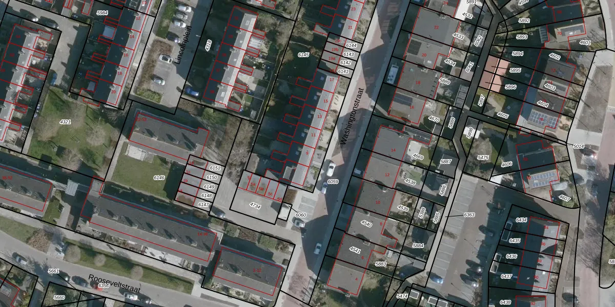 Washingtonstraat 9 is gelegen op kadastraal perceel OFK00C6145. Deze kadastrale aanduiding is uniek en wordt gebruikt door het Kadaster om eigendomsrechten en andere zakelijke rechten vast te leggen. Het perceel maakt onderdeel uit van de kadastrale gemeente Oostflakkee.