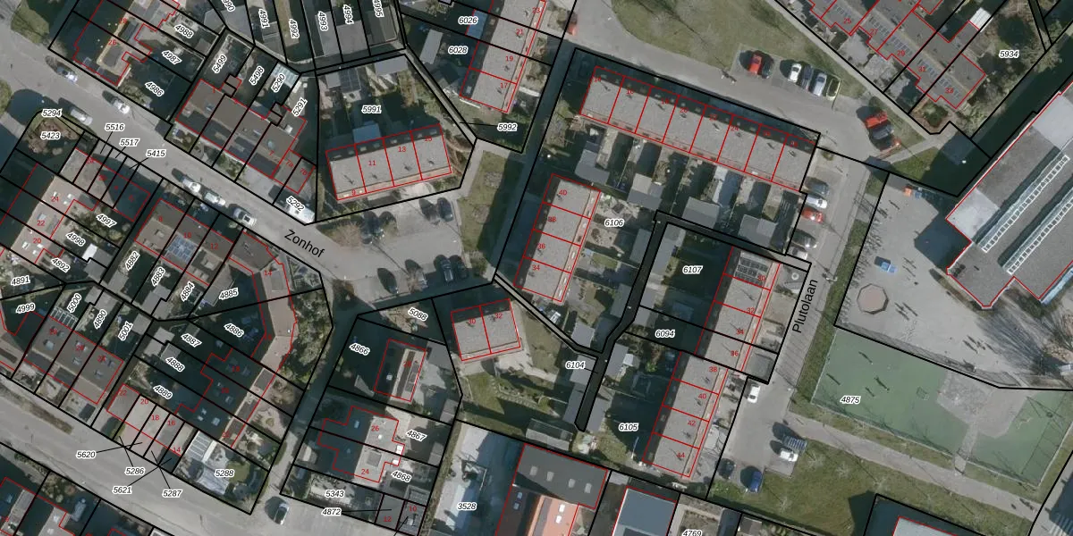 Zonhof 34 is gelegen op kadastraal perceel OFK00C6106. Deze kadastrale aanduiding is uniek en wordt gebruikt door het Kadaster om eigendomsrechten en andere zakelijke rechten vast te leggen. Het perceel maakt onderdeel uit van de kadastrale gemeente Oostflakkee.