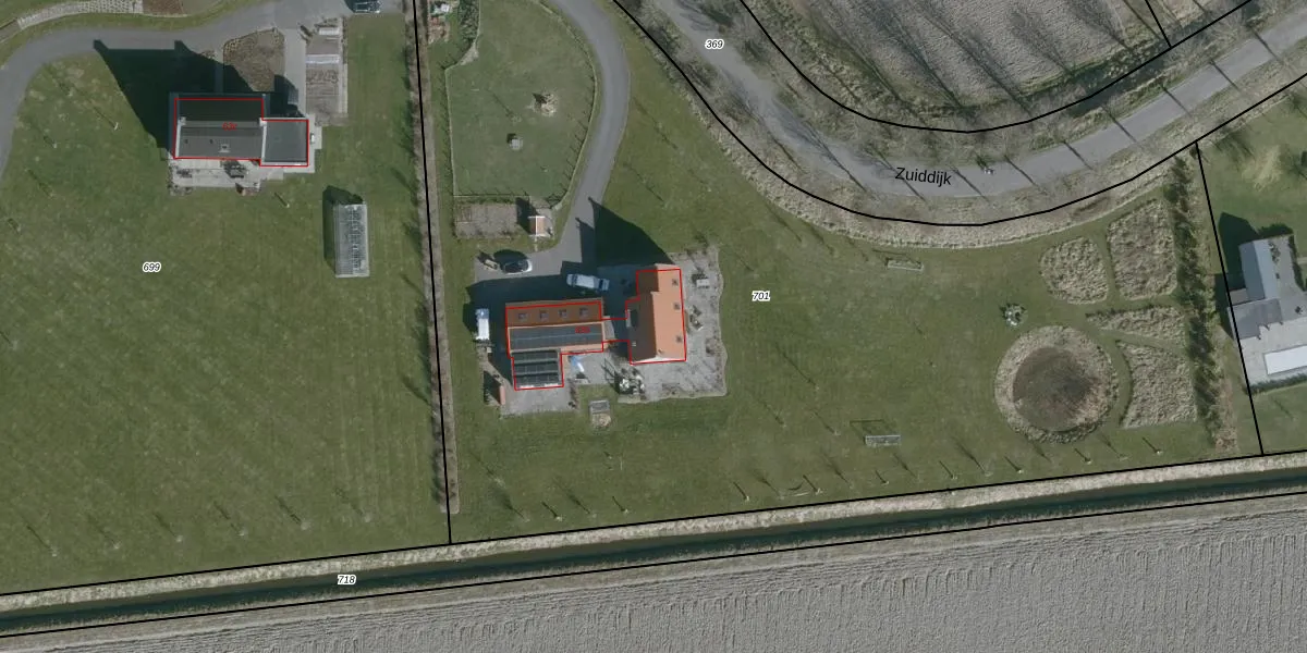 Zuiddijk 63-b is gelegen op kadastraal perceel OFK00K701. Deze kadastrale aanduiding is uniek en wordt gebruikt door het Kadaster om eigendomsrechten en andere zakelijke rechten vast te leggen. Het perceel maakt onderdeel uit van de kadastrale gemeente Oostflakkee.