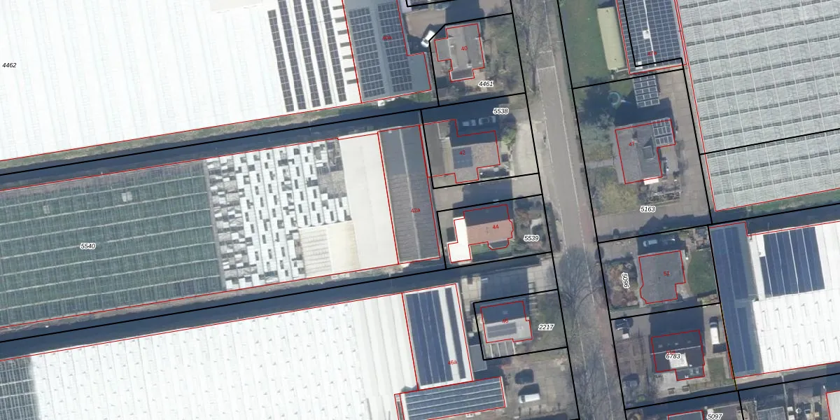 Het adres ligt op het perceel AKM01-B-5540, dat zich in de kadastrale gemeente Alkemade bevindt. De oppervlakte van het perceel is 8645 m². Dat is groter dan gemiddeld in Alkemade, waar de gemiddelde perceeloppervlakte op 2901,07 m² ligt. Het kleinste perceel in de kadastrale gemeente is 0 m² groot. De grootste perceeloppervlakte is 46,1 ha. Dit is het enige adres dat aanwezig is op het perceel. De huidige grenzen van het perceel zijn digitaal in de Basisregistratie Kadaster (BRK) geregistreerd op 29-08-2007.