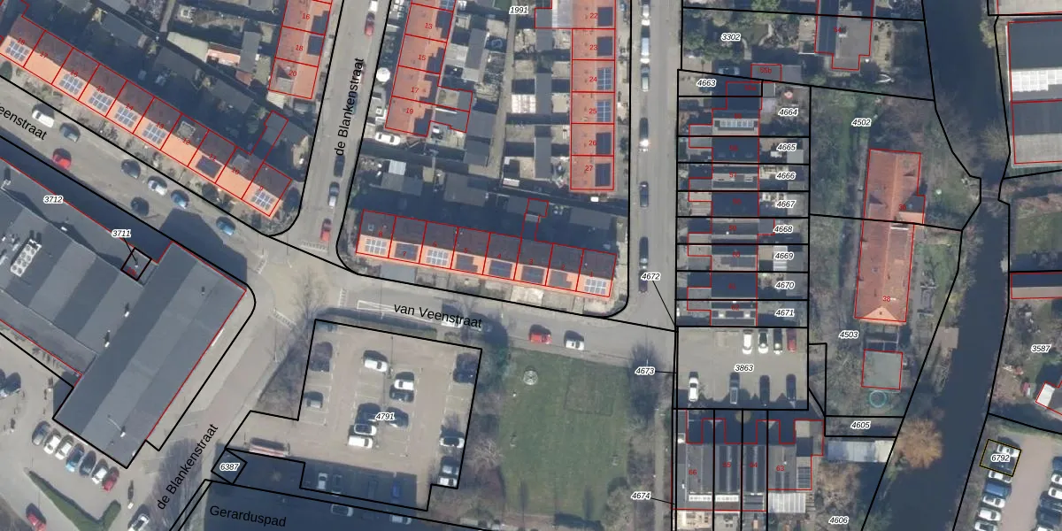 van Veenstraat 3 is gelegen op kadastraal perceel AKM01B1991. Deze kadastrale aanduiding is uniek en wordt gebruikt door het Kadaster om eigendomsrechten en andere zakelijke rechten vast te leggen. Het perceel maakt onderdeel uit van de kadastrale gemeente Alkemade.
