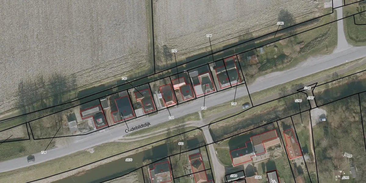 Het perceel waarop Oudebildtdijk 68 staat heeft een oppervlakte van 165 m². Dit is een middelgroot perceel. De perceeloppervlakte wordt geregistreerd door het Kadaster. Gedetailleerde informatie over de maten van dit perceel kunt u vinden in het rapport Kadastrale kaart met maatvoering van Oudebildtdijk 68.