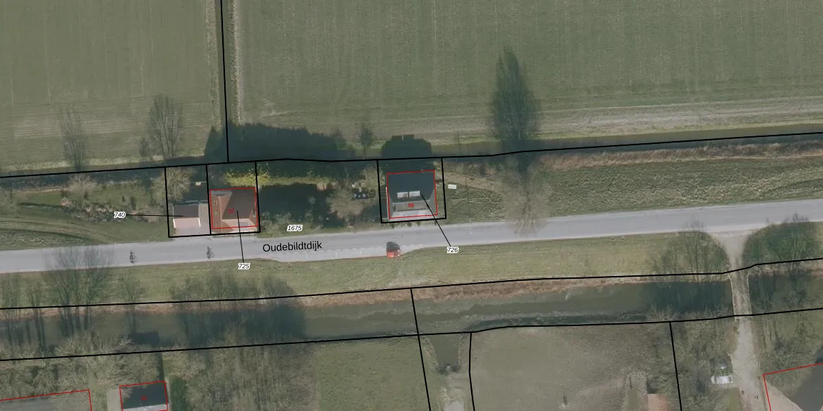Het perceel waarop Oudebildtdijk 86 staat heeft een oppervlakte van 235 m². Dit is een middelgroot perceel. De perceeloppervlakte wordt geregistreerd door het Kadaster. Gedetailleerde informatie over de maten van dit perceel kunt u vinden in het rapport Kadastrale kaart met maatvoering van Oudebildtdijk 86.
