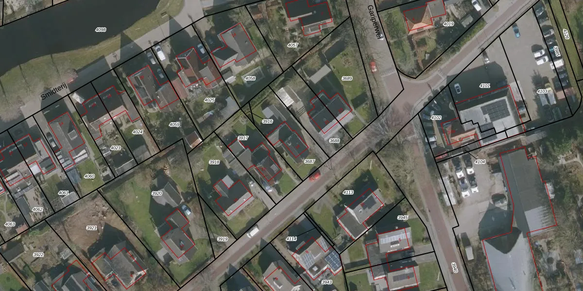 Gebruik de zoekbalk of klik op een perceel voor informatie over de adressen binnen dit perceel.