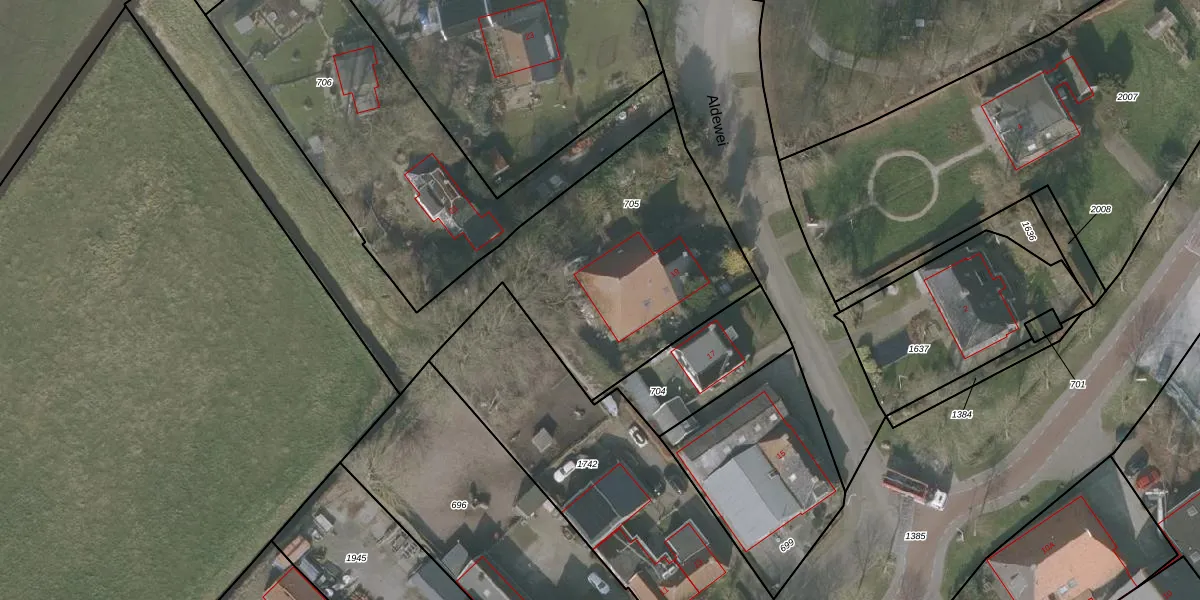 Het perceel waarop Aldewei 19 staat heeft een oppervlakte van 2035 m². Dit is een zeer groot perceel. De perceeloppervlakte wordt geregistreerd door het Kadaster. Gedetailleerde informatie over de maten van dit perceel kunt u vinden in het rapport Kadastrale kaart met maatvoering van Aldewei 19.
