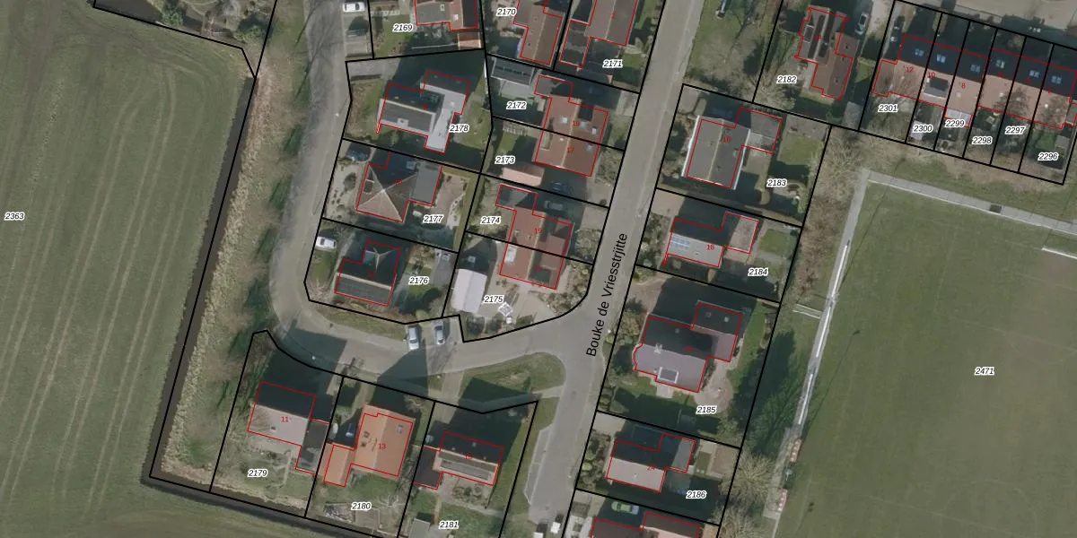Het perceel waarop Bouke de Vriesstrjitte 21 staat heeft een oppervlakte van 370 m². Dit is een groot perceel. De perceeloppervlakte wordt geregistreerd door het Kadaster. Gedetailleerde informatie over de maten van dit perceel kunt u vinden in het rapport Kadastrale kaart met maatvoering van Bouke de Vriesstrjitte 21.