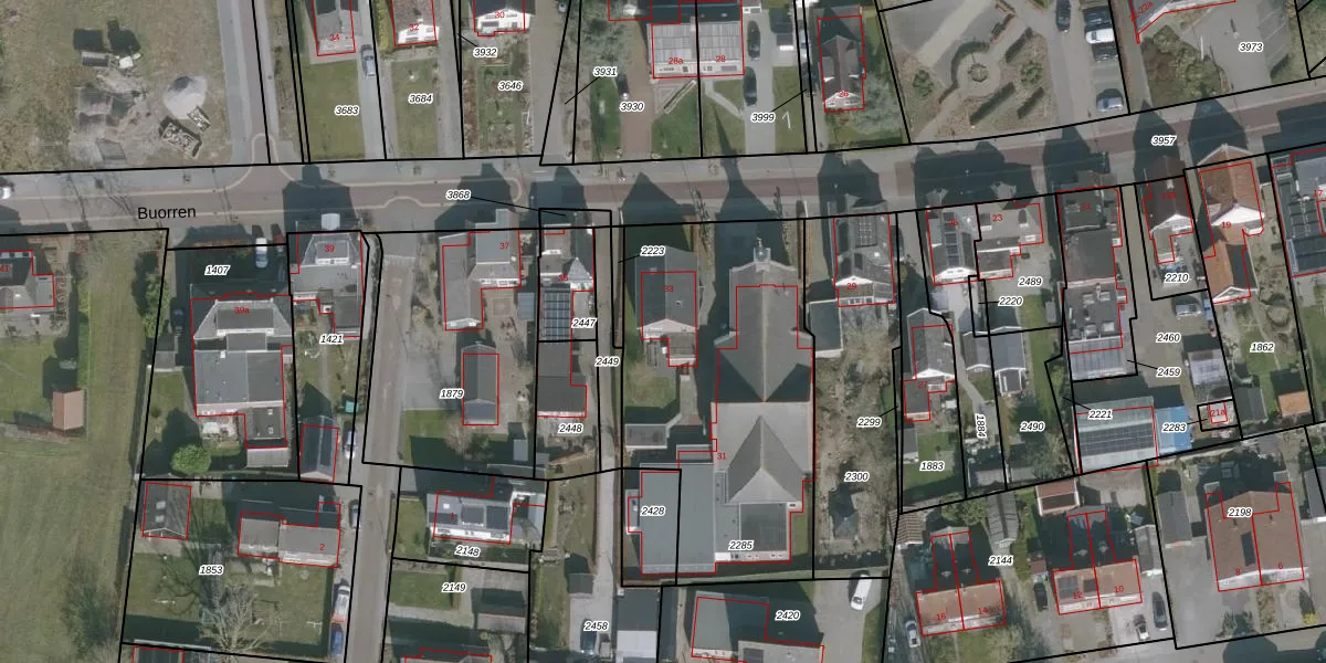 Het perceel waarop Buorren 33 staat heeft een oppervlakte van 1453 m². Dit is een zeer groot perceel. De perceeloppervlakte wordt geregistreerd door het Kadaster. Gedetailleerde informatie over de maten van dit perceel kunt u vinden in het rapport Kadastrale kaart met maatvoering van Buorren 33.