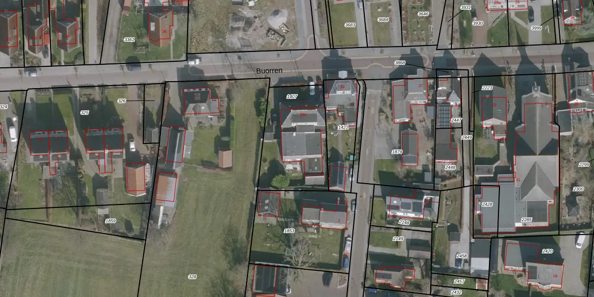 Het perceel waarop Buorren 39-a staat heeft een oppervlakte van 748 m². Dit is een groot perceel. De perceeloppervlakte wordt geregistreerd door het Kadaster. Gedetailleerde informatie over de maten van dit perceel kunt u vinden in het rapport Kadastrale kaart met maatvoering van Buorren 39-a.