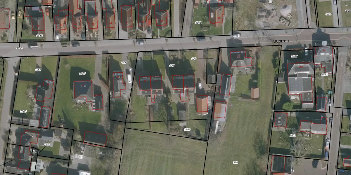 Het perceel waarop Buorren 45 staat heeft een oppervlakte van 1790 m². Dit is een zeer groot perceel. De perceeloppervlakte wordt geregistreerd door het Kadaster. Gedetailleerde informatie over de maten van dit perceel kunt u vinden in het rapport Kadastrale kaart met maatvoering van Buorren 45.