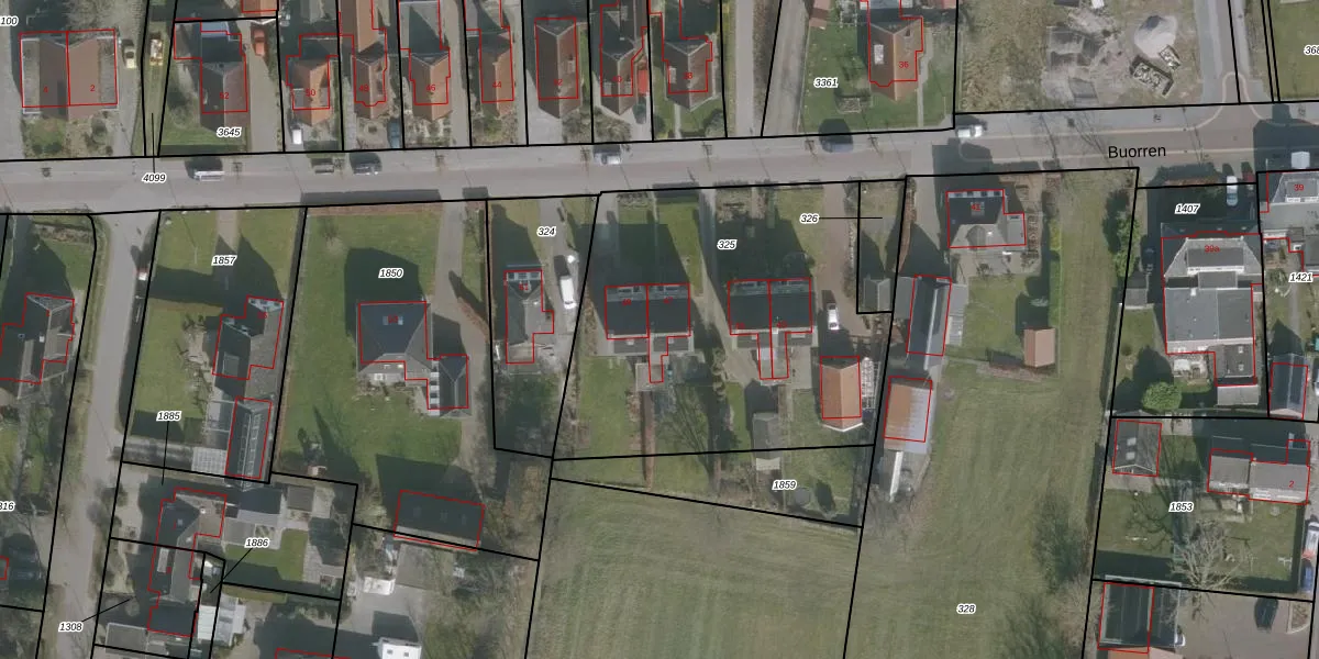 Het perceel waarop Buorren 47 staat heeft een oppervlakte van 1790 m². Dit is een zeer groot perceel. De perceeloppervlakte wordt geregistreerd door het Kadaster. Gedetailleerde informatie over de maten van dit perceel kunt u vinden in het rapport Kadastrale kaart met maatvoering van Buorren 47.