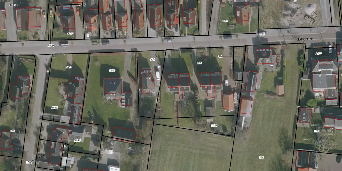 Het perceel waarop Buorren 49 staat heeft een oppervlakte van 1790 m². Dit is een zeer groot perceel. De perceeloppervlakte wordt geregistreerd door het Kadaster. Gedetailleerde informatie over de maten van dit perceel kunt u vinden in het rapport Kadastrale kaart met maatvoering van Buorren 49.